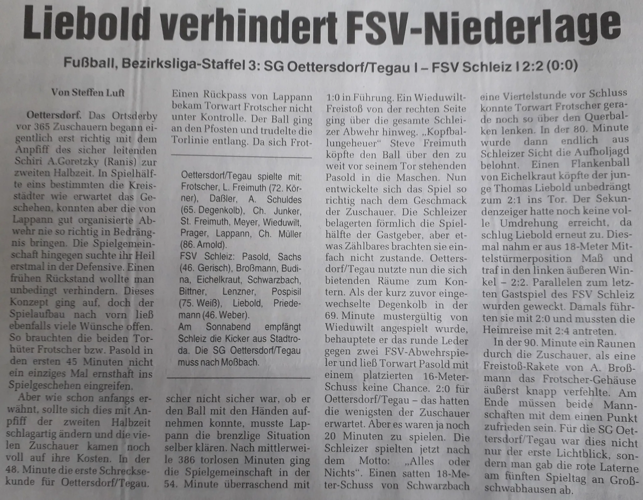 | 2:2 (81') | Thomas Liebold |