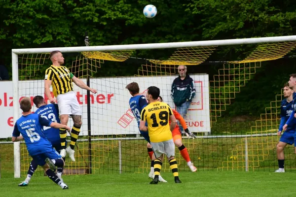 Auf diese Weise belohnten die Schleizer nicht nur sich selbst, sondern auch die Fans, die die volle Spielzeit über mit gefiebert, mitgejubelt, und in schwarz-gelber Fankleidung unterstützt haben. Das wird am kommenden Samstag, dem 10. Mai auch wieder notwendig sein, wenn im Showdown um den Klassenerhalt der VfL Meiningen am Fasanengarten gastiert. Schafft es der FSV dann Revanche für die Hinspielniederlage zu nehmen, kämpfen zwei Mannschaften aus dem Saale-Orla-Kreis dann vielleicht ja auch nächste Saison wieder um Thüringenligapunkte! Voraussetzung dafür sind möglichst viele Punkte schon im Mai, der noch vier der letzten fünf Spieltage der Saison 2024/2025 parat hat. Und diese einzufahren wird schwer genug!