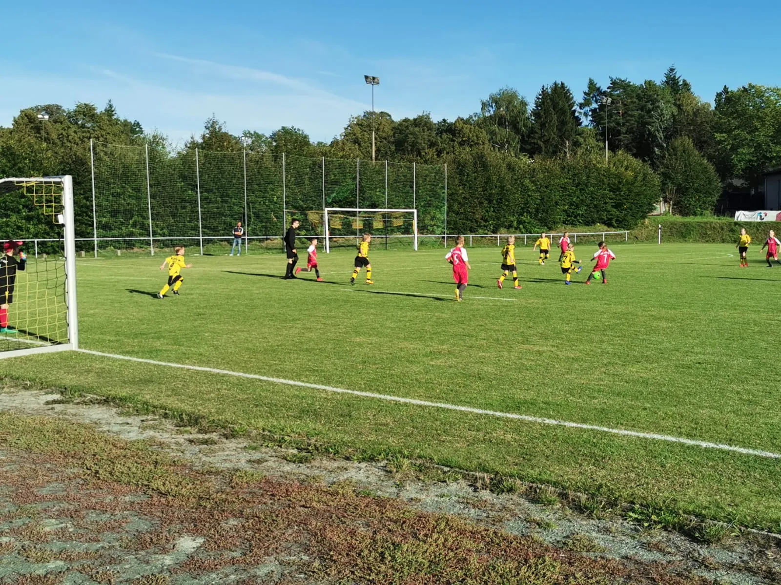 Am Freitag Abend hatten unsere Nachwuchskicker der F Junioren den SV Ebersdorf zu Gast. Schleiz musste diesmal im ungewohnten roten Ausweichtrikot spielen. Dies machte sich in der ersten Viertelstunde bemerkbar. Fehlpässe in Richtung der gelb gekleideten Ebersdorfer waren keine Seltenheit. Nachdem sich alle an die neue Farbe gewöhnt hatten lief das Spiel mehr und mehr. Eine kompakte Defensive, Spielaufbau aus der Verteidigung und Flügelspiel mit gefährlichen Flanken führten zu vielen Chancen, welche bis zur Halbzeit 5x genutzt werden konnten. Im 2. Abschnitt nahm Schleiz das Tempo etwas raus. Dennoch konnten unsere schwarz gelben noch 3 weitere Treffer erzielen. Am Ende stand dank einer geschlossenen Mannschaftsleistung ein ungefährdeter 8:0 Heimsieg zu Buche.