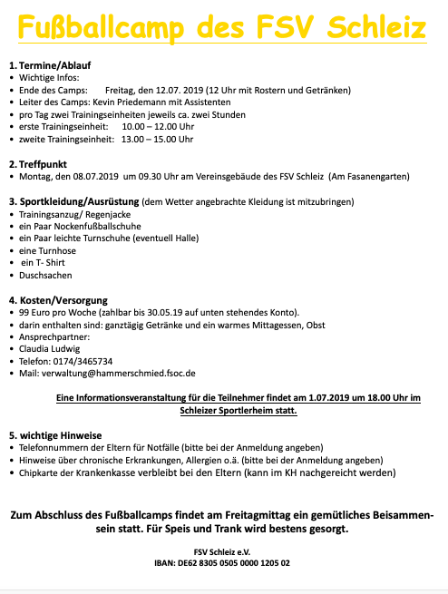FSV Fußballcamp auch in diesem Sommer!!!