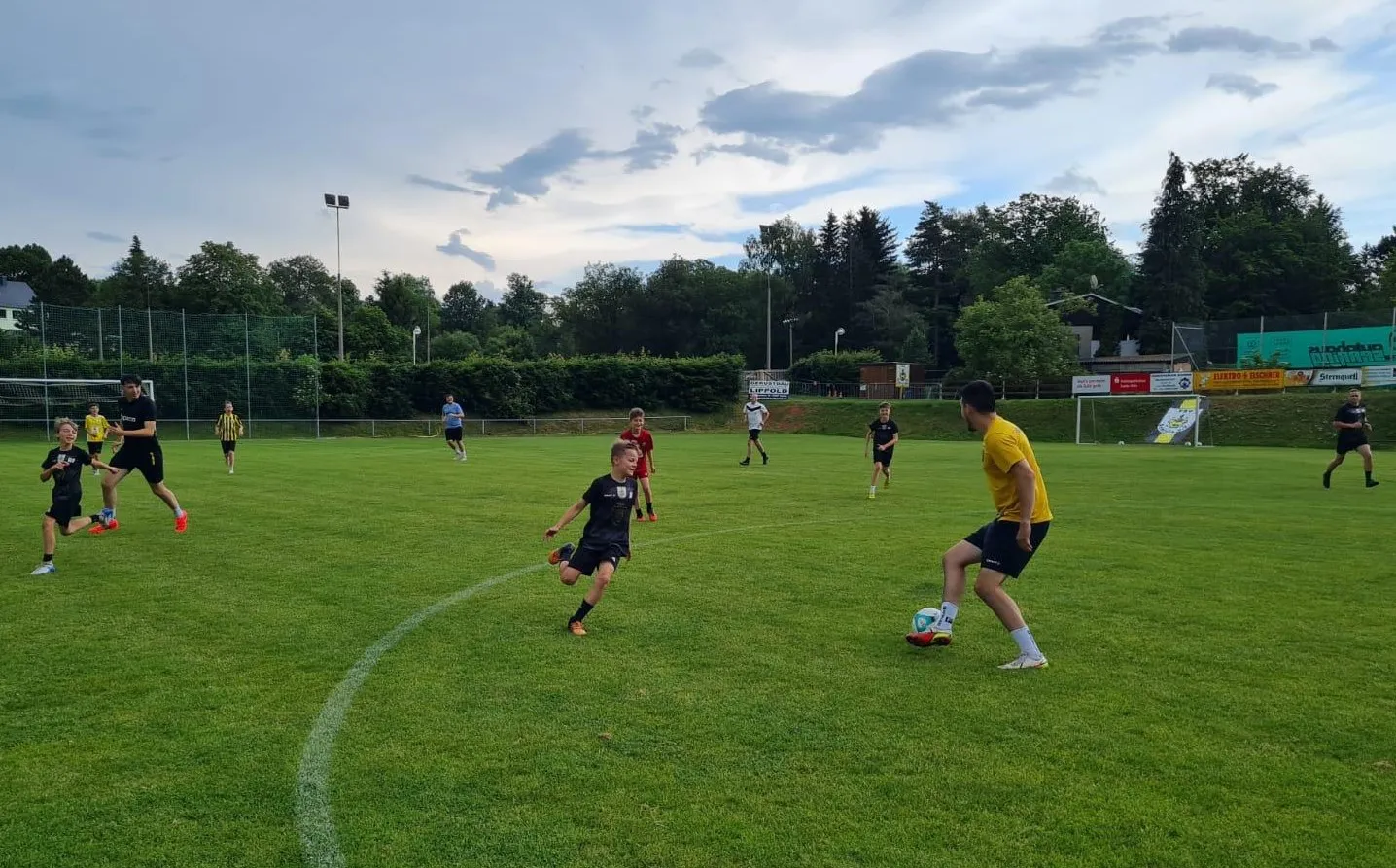 Am Dienstag, den 18. Juni 2024, absolvierten unsere E1-Junioren das offiziell letzte Training der Kreisoberliga-Saison 2023/24. Als kleine Überraschung waren an diesem Tag auch einige Spieler der 1. und 2. Männermannschaft mit am Start. Ein großer Dank hierfür geht an Markus „Stanko“ Porst und an die ganze Nukovic-Clique (Amel, Asmir und Mahir), die mit den Kindern einige Passübungen durchführten. Auch ein fußballerisches Kräftemessen, in Form von „Alt gegen Jung“ durfte am Ende nicht fehlen.