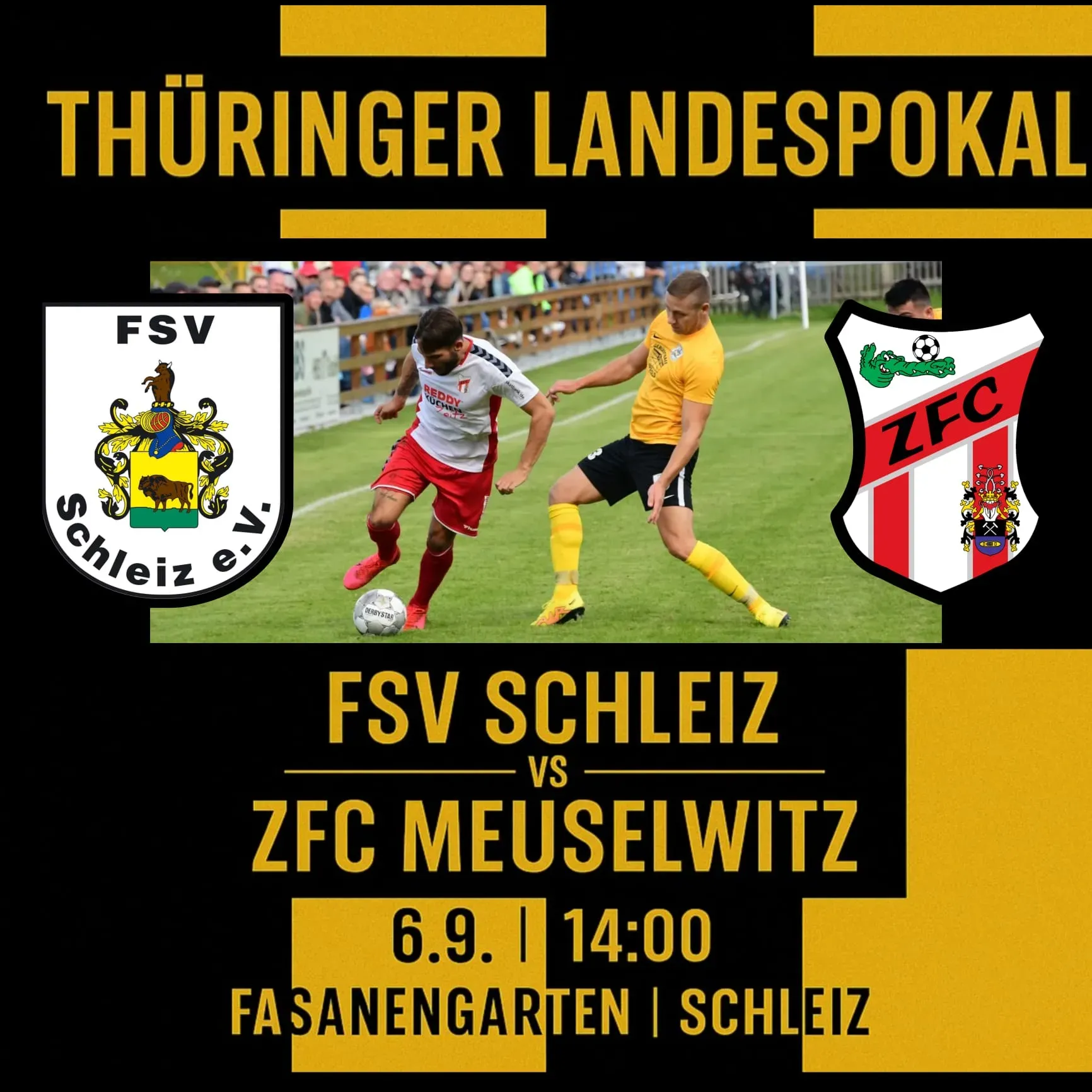 Denn am Samstag, dem 6. September, gastiert um 14:00 Uhr der ZFC Meuselwitz am Schleizer Fasanengarten. Dass dieser nicht nur einer der drei Thüringer Regionalligisten ist, sondern auch amtierender Pokalsieger und damit die Mission 'Titelverteidigung' verfolgt, macht die Sache für die Schwarz-Gelben natürlich umso aussichtsloser.